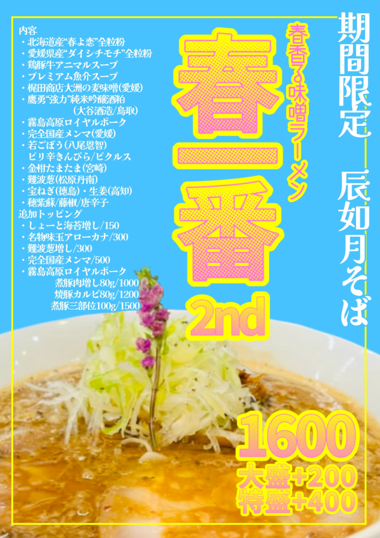 特徴ある限定ラーメンが産まれます。